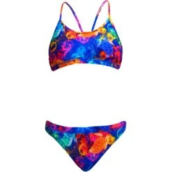 De nauwsluitende racerback met enkele geknoopte schouderbandjes en breed elastiek onder de borst helpt u uw training in alle comfort voort te zetten. De slip zit net boven de heupen en de gladde, platte elastische tailleband houdt u comfortabel en veilig tijdens uw training. Vergeet niet dat je het koordje kunt vastknopen om het goed vast te houden, zodat het je niet in de steek laat. Het wordt verkocht als een set. De bikini is gemaakt met alle zorg en liefde waardoor hij trots is om van Funkita te zijn.