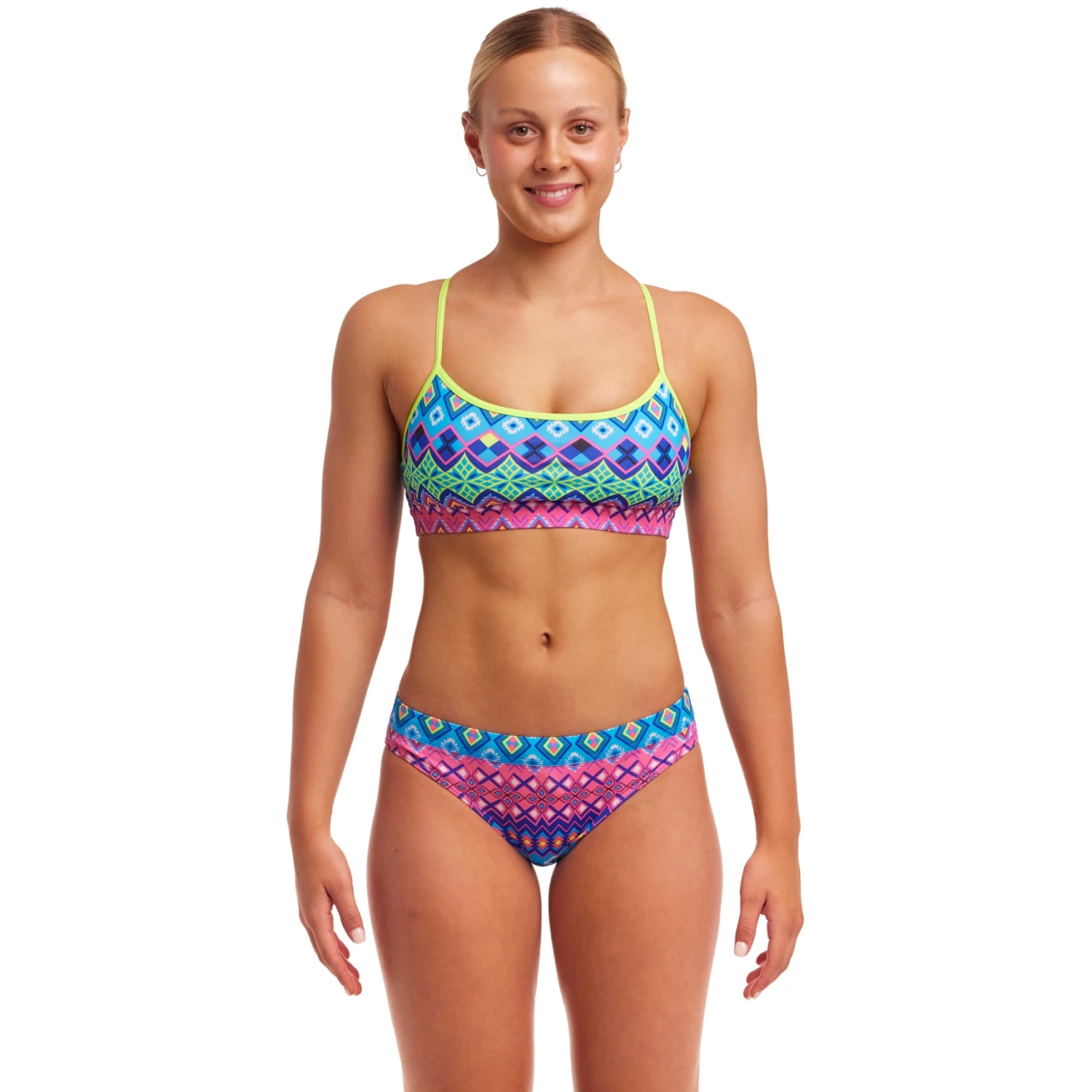 De Funkita Swim Crop Top is een racerback bikinitop met enkele bandjes op de schouder, verwijderbare vulling en een ondersteunend rugpand. Het platte onderbustelastiek en de uitneembare gewatteerde cups geven u extra comfort en steun. De top wordt apart verkocht, dus je kunt hem combineren met je favoriete Funkita slip in verschillende maten en prints. Het bikinitopje is gemaakt met alle zorg en liefde waardoor het trots is om van Funkita te zijn.