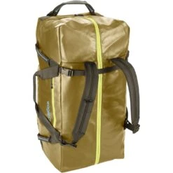 Hij is sterk en zeer weerbestendig en biedt bescherming en gemakkelijke toegang voor je spullen. Het hoofdcompartiment opent via een U-vormige klep met rits en heeft een paar gaaszakken met rits aan de onderkant voor gemakkelijk te sluiten spullen zoals je lot. Een extern vak met rits biedt ruimte voor alles wat je snel nodig hebt. Het gevoerde bodempaneel voegt structuur toe en helpt de lading op te vangen als de duffel aan een bagagedrager wordt gedragen. Draagopties zijn onder andere gewatteerde, afneembare schouderbanden voor het dragen van een rugzak, handgrepen met drukknopen en treklussen aan beide uiteinden om meerdere tassen aan elkaar te bevestigen. Met Daisy-kettingen kun je extra spullen aan de buitenkant vastmaken.